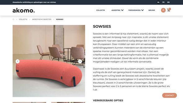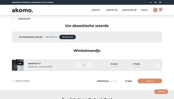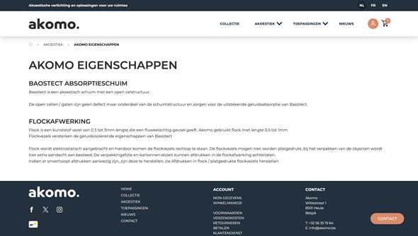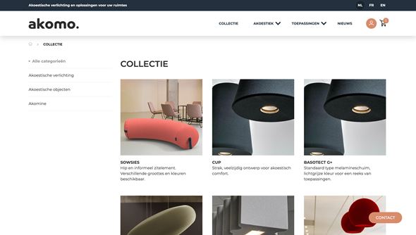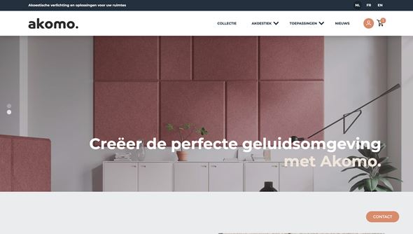 Give the Akomo website a fresh new look that fully showcases the products. Additionally, integrate an e-commerce module and include a calculator tool to assess the acoustic performance of spaces.