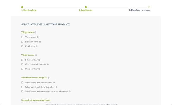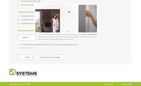 IDcreation developed a custom web application accessible through a single universal URL. The tool is designed as a clear step-by-step form where customers can configure their desired product. They are guided through the process of entering dimensions, selecting colors, choosing mounting methods, and other specifications.