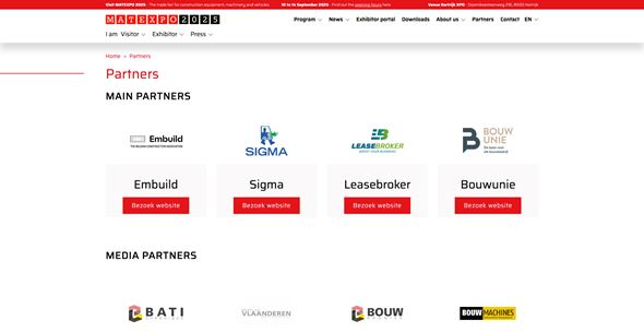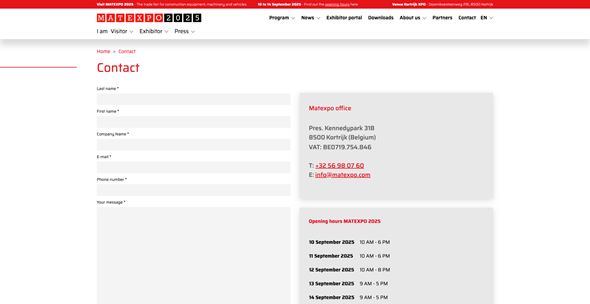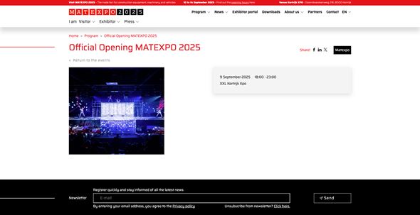 - Program and News: The website offers a comprehensive program overview, allowing visitors to easily filter on different categories, such as exhibitors or Matexpo news only. This ensures users can quickly and easily find the information relevant to them.
