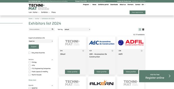 A contemporary website that functions smoothly, including the necessary integrations with an exhibitor portal where exhibitors can manage their registrations and booths. Techni-Mat can easily manage the website themselves via the CMS, while visitors can navigate effortlessly to find all the necessary information and prepare for the trade show.