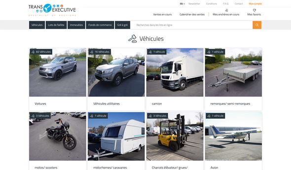 Grâce à leur nouveau système d'enchères sur site web personnalisé construit par IDcreation, Trans Executive peut désormais organiser efficacement des enchères en ligne dans toutes les catégories. Ils sont également en mesure de recevoir et de traiter les offres gagnantes rapidement et en toute sécurité. Une fois qu'une enchère est attribuée au plus offrant, celui-ci est notifié par e-mail et le paiement et l'exécution de la commande peuvent commencer.