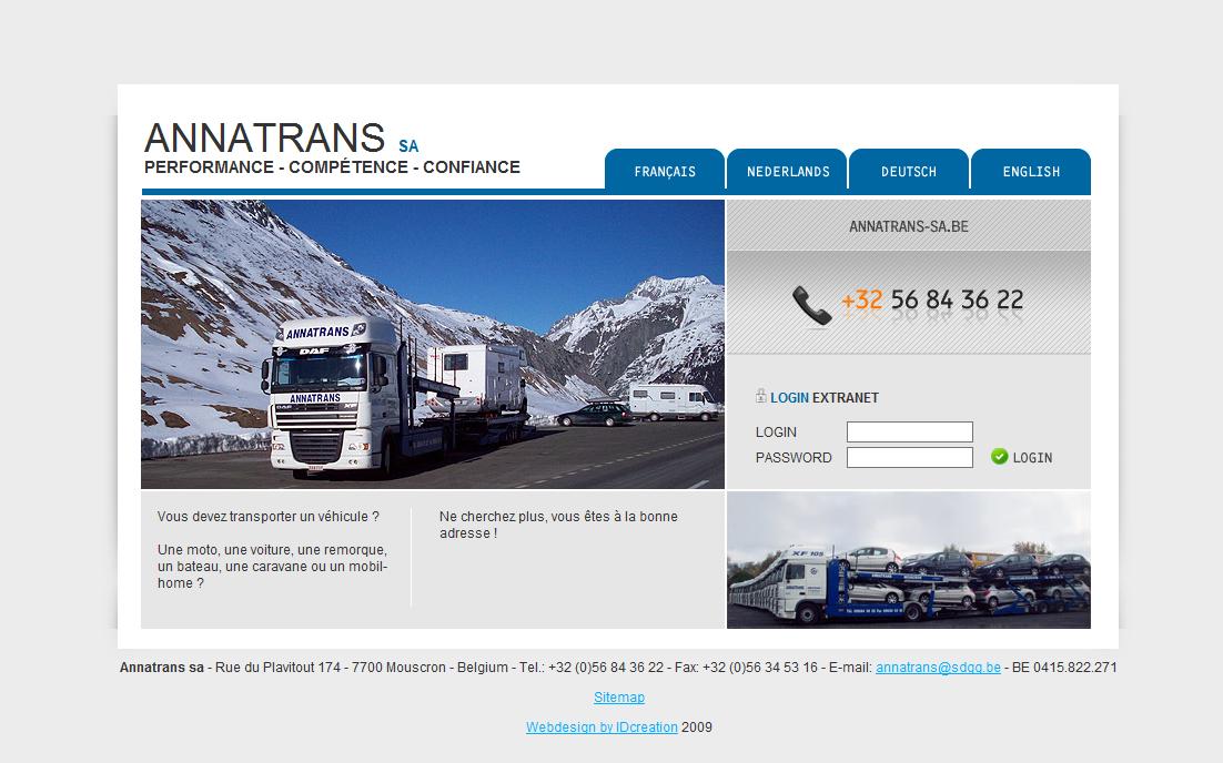 IDcreation a développé un extranet spécifique et sur mesure pour la société Annatrans, société bien connue à Mouscron, s'occupant du transport de tous véhicules. Transport de voitures, transport de motos, transport de remorques, caravanes ou mobilhomes, tels sont les activités de la société Annatrans sa. IDcreation a développé un système permettant à leurs clients, les compagnies d'assurance, de consulter les dossiers, ainsi que les photos des véhicules avant le chargement et après le déchargement, en temps réel ! Une synchronisation en temps réel s'effectue directement du serveur d'Annatrans vers l'un de nos serveurs, chez IDcreation. Un outil qui leur permet de gagner un temps non négligeable ! www.annatrans-sa.be