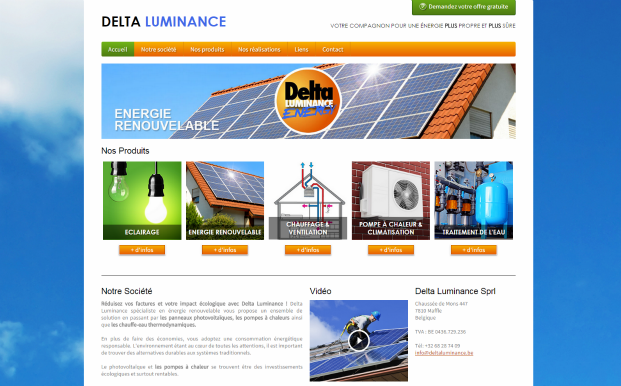 La société Delta Luminance est spécialisée dans l'énergie renouvelable. Dans leur gamme ils proposent des panneaux photovoltaïques, des pompes à chaleurs & climatisation, éclairage,... IDcreation a développé leur nouveau site entièrement personnalisé.