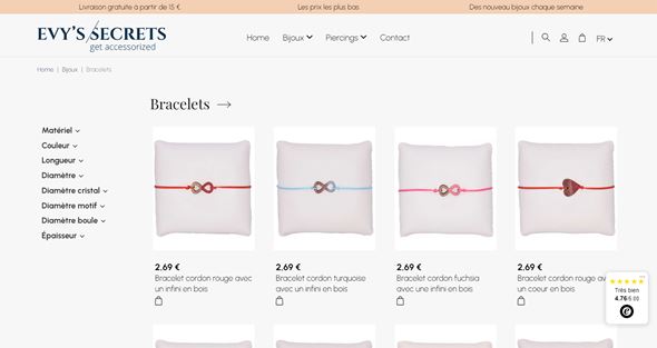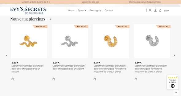 Evy's Secrets était à la recherche d'un développeur de site web professionnel pour le relookage de sa boutique en ligne. Ils font la promotion de la vente de leurs bijoux et piercings par le biais d'une campagne Google Ads. Un lien avec le Google Merchant Center était donc nécessaire.