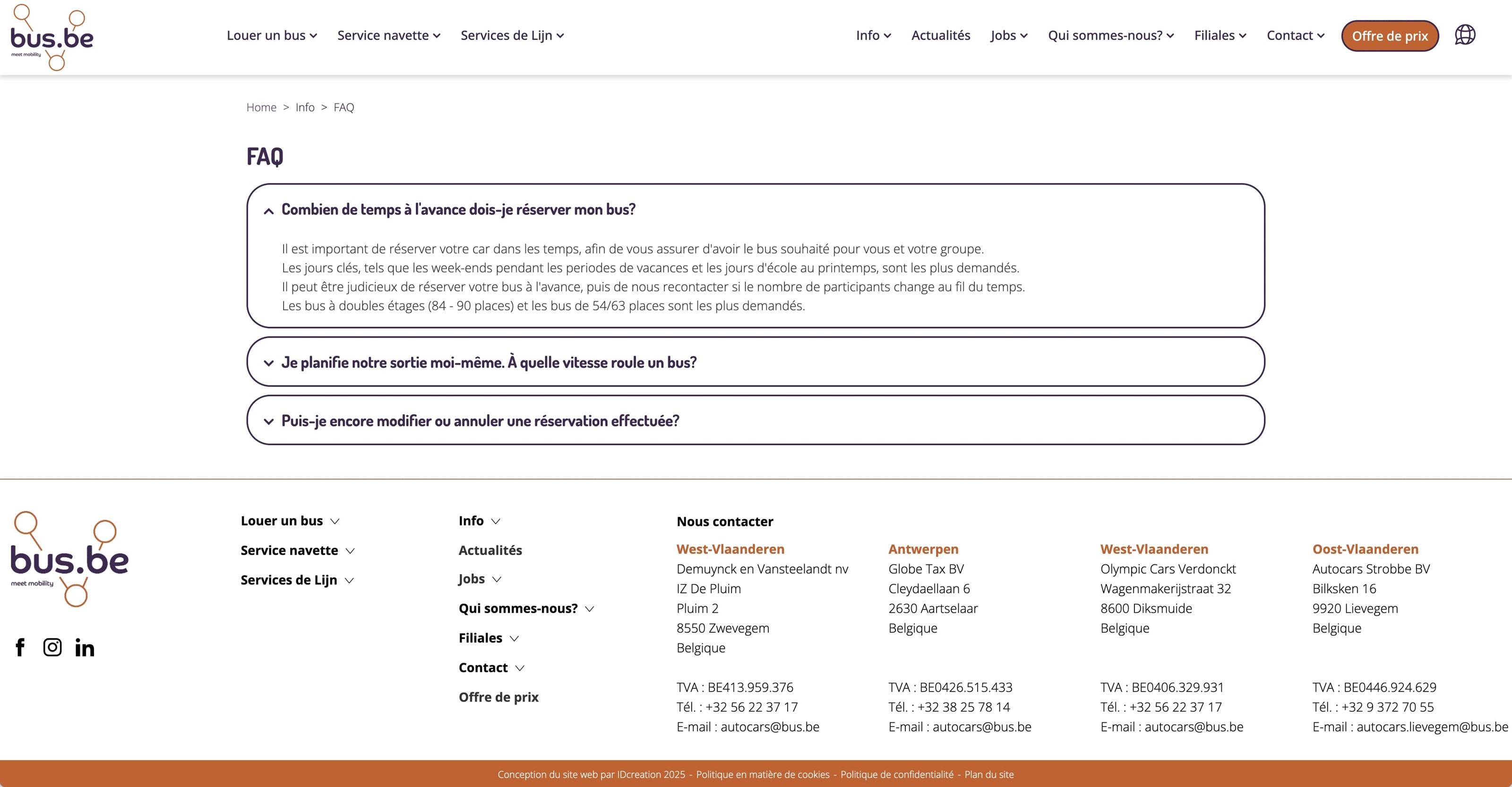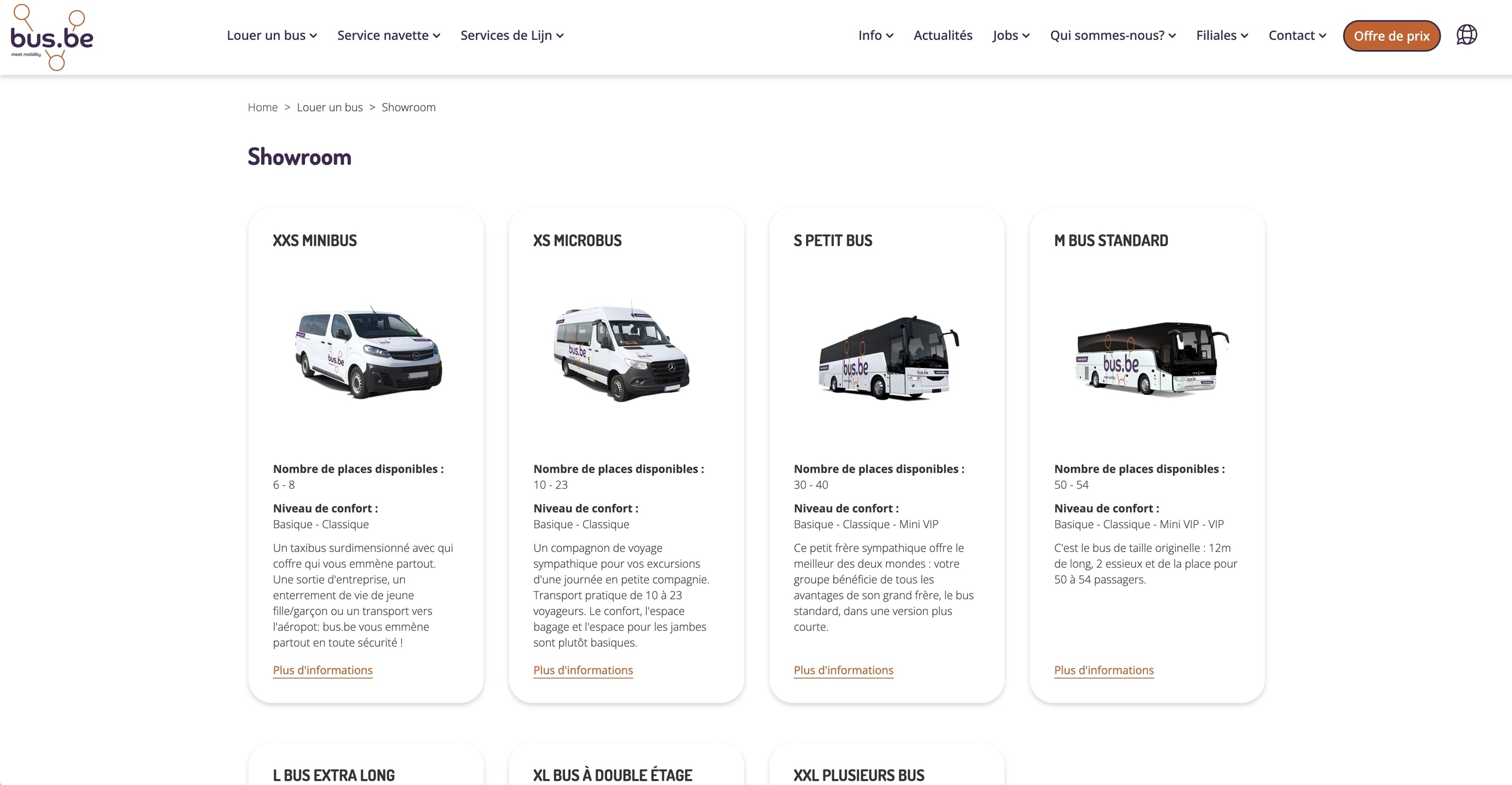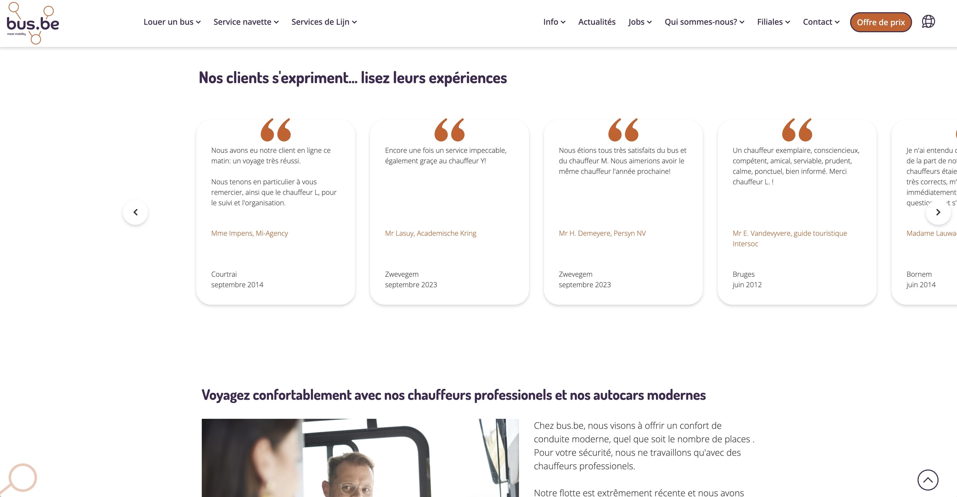 Aujourd’hui, bus.be dispose d’une vitrine digitale professionnelle qui inspire confiance, stimule la conversion et évolue avec l’organisation. Grâce à sa structure flexible et à sa gestion intuitive, le site est pleinement prêt pour l’avenir.