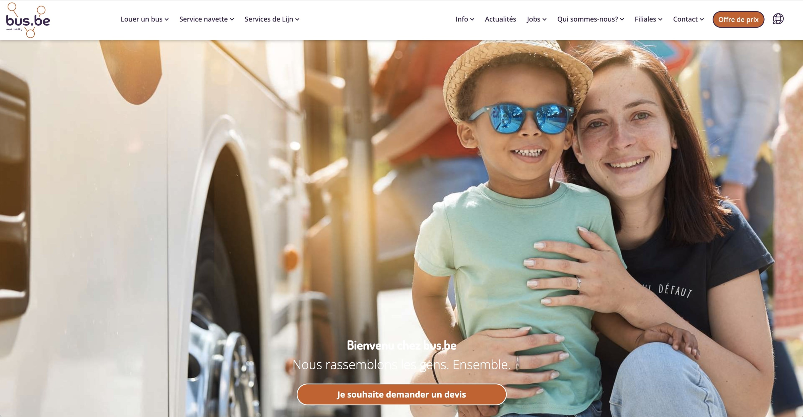 bus.be recherchait un site web qui inspire confiance tout en présentant des informations complexes de manière claire et conviviale. La plateforme devait également prendre en charge plusieurs filiales, publics cibles et formules de voyage, en plusieurs langues, tout en restant facile à gérer pour l’équipe interne.