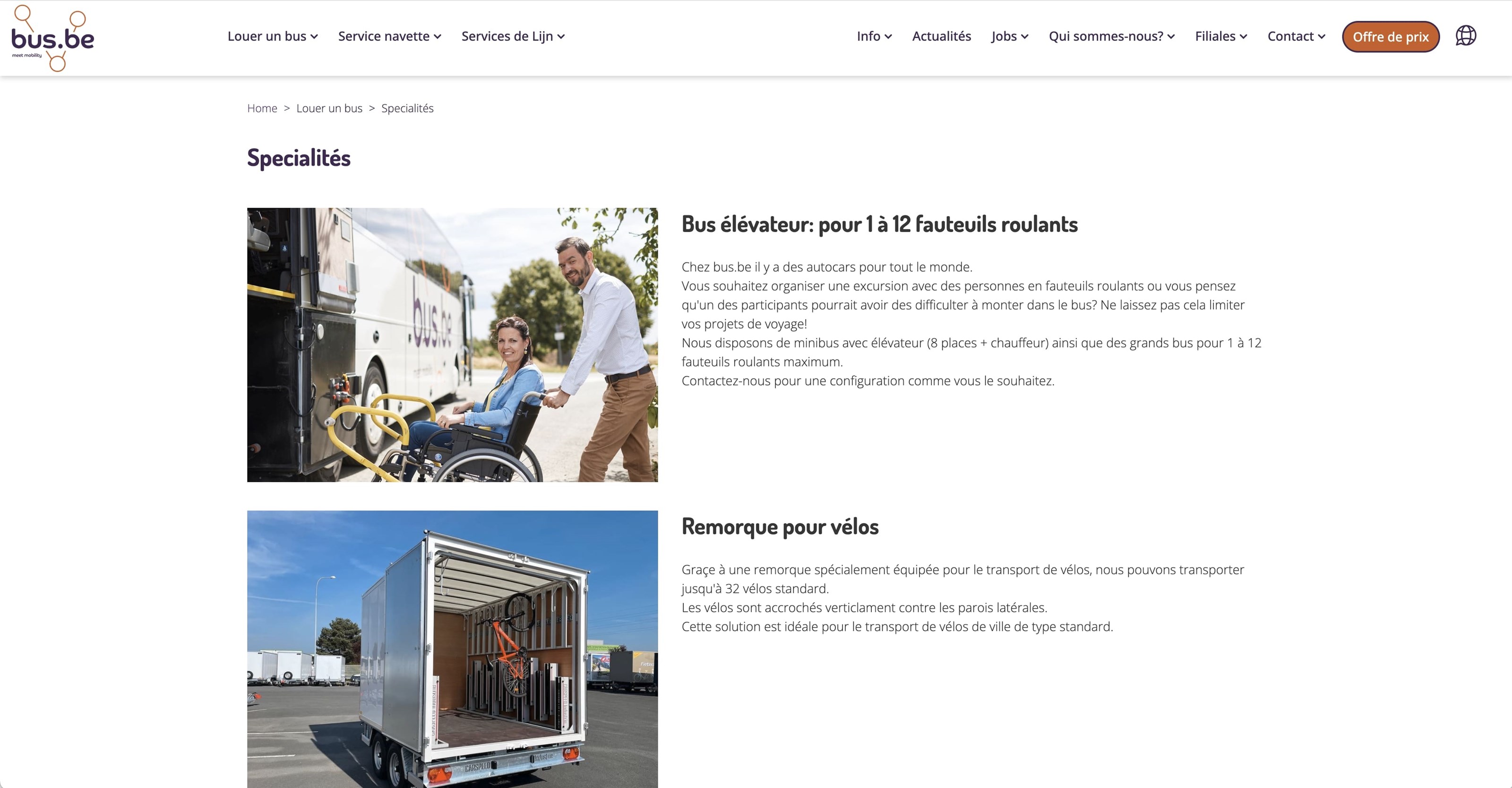 L’ensemble du site est géré via un CMS convivial, permettant à l’équipe de bus.be de gérer et d’adapter facilement l’ensemble du contenu.