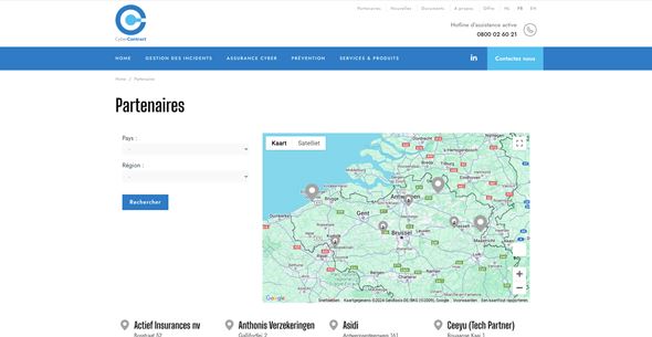 - Module partenaires : Une carte interactive permettant aux visiteurs de trouver facilement les agents d'assurance proposant les produits de CyberContract.