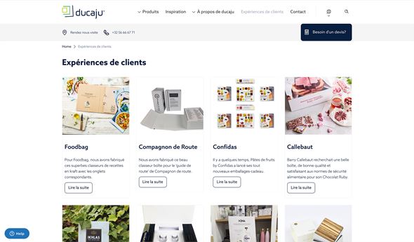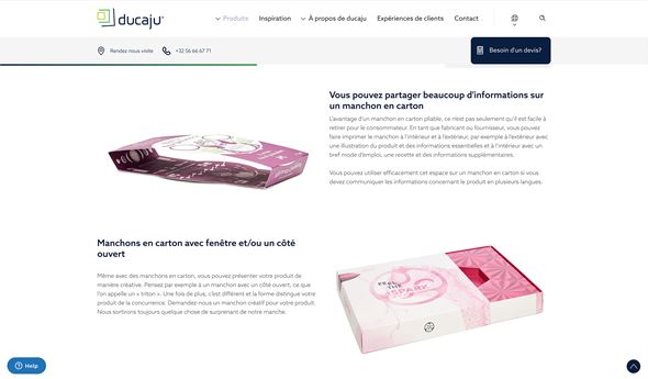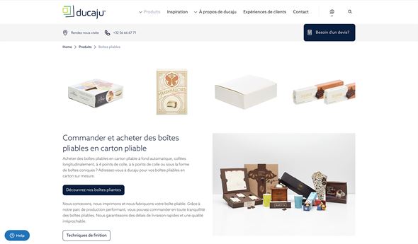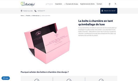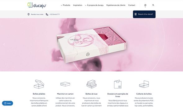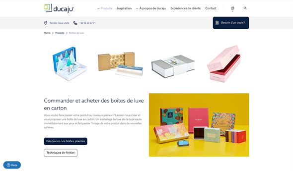 Ducaju recherchait un partenaire qui pouvait développer un site web multilingue dans lequel tous leurs types de boîtes avec toutes les finitions et options d'impression possibles pourraient être affichés dans un catalogue clair et attracif.