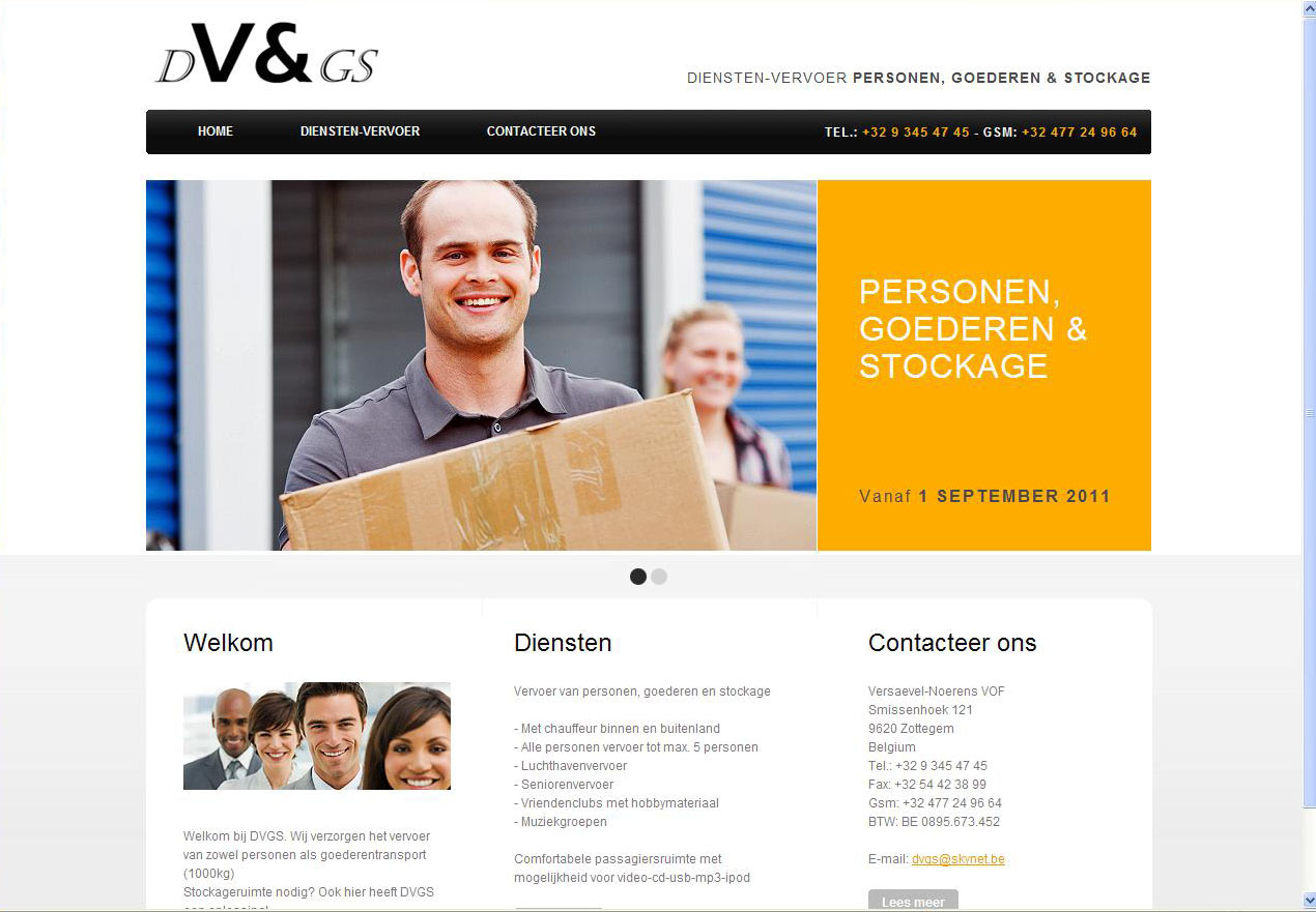 Welkom bij DVGS : de referentie voor het vervoer van zowel personen als goederentransport (1000kg). Stockageruimte nodig? Ook hier heeft DVGS een oplossing! Neem zeker een kijkje op hun website, op maat gemaakt door IDcreation. De klant beheert zelf zijn website via een gebruiksvriendelijke invulmodule en dit zonder de vereiste technische kennis. www.dvgs.be
