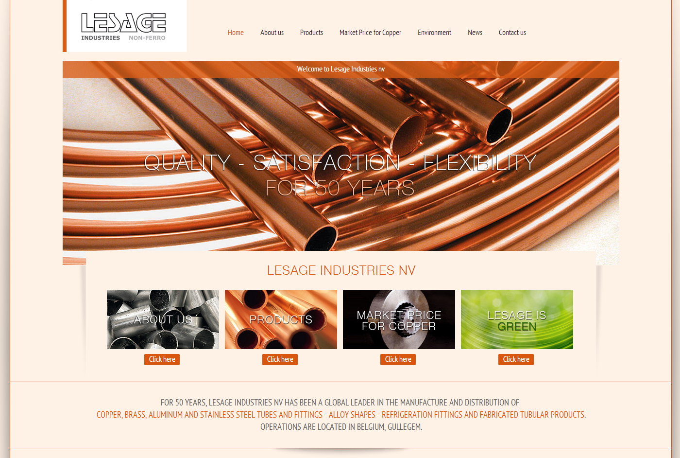 Lesage industries is reeds 50 jaar marktleider in het produceren en verdelen van koper, aluminium, rvs buizen en hulpstukken. Voor de ontwikkeling van hun professionele website deden ze beroep op webdesigner IDcreation. De website werd opgebouwd op maat van de klant met een duidelijk overzicht van hun producten. U kunt er tevens de huidige marktprijs van koper raadplegen.