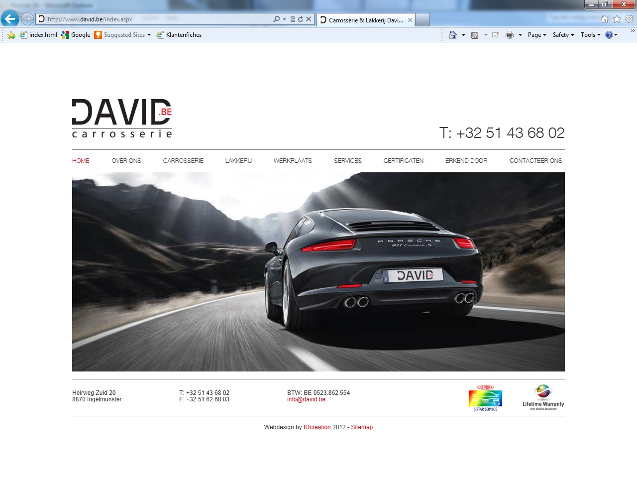 IDcreation deed de restyling van de website van Carrosserie David. Deze laatste heeft jarenlange ervaring in de herstelling van alle auto merken. Het beheer van de website kan volledig worden voorzien door Carrosserie David zelf dankzij een geïntegreerde CMS applicatie.