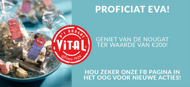 Eva kwam als winnaar uit de bus voor de Facebookactie! Ze won een bon ter waarde van €200 in de webshop van Vital! Laat het smaken, Eva!