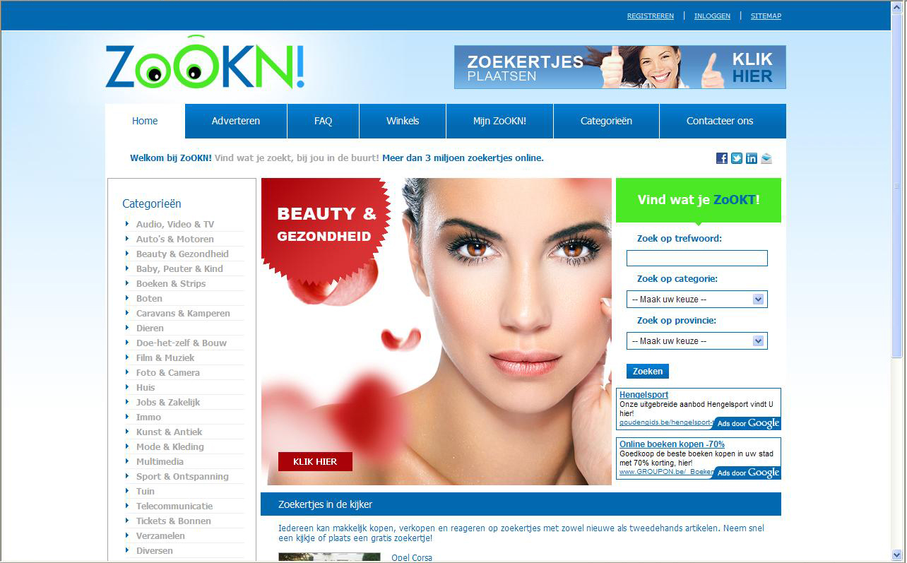 Bent u op zoek naar een auto, huis, concerttickets, boeken, parfum, boot... of wenst u zelf iets als zoekertje te plaatsen? Dan dient u een kijkje te nemen op de site van Zookn!