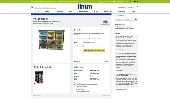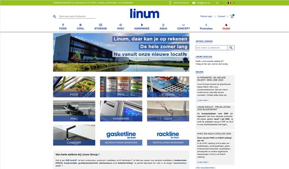 Linum is distributeur in horeca, grootkeuken, koeltechniek & HVAC uitrusting, o.a. via hun site linum.eu. Linum Europe is een ISO-gecertificeerd familiebedrijf dat ruim dertig jaar gespecialiseerd is in de ontwikkeling en verkoop van toebehoren voor koeltechniek (o.a. dichtingen, sluitwerk, profielen), HVAC (o.a. sokkels, condenspompen, kabelgoten) koude-isolatie (PUR-schuimen, glasdeuren), horeca- en grootkeukentechniek (rekstellingen, blenders, GN bakken...) en winkelinrichting (o.a. aluminium profielen, bekerdispensers, RVS spoelbakken en mengkranen). Het bedrijf heeft vestigingen in België, Nederland, Frankrijk, Duitsland en Zwitserland en heeft ruim 20.000 referenties in het artikelbestand.