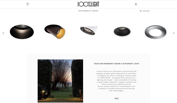 Een strakke en moderne website bouwen voor het bedrijf 100% LIGHT®, een bedrijf dat sterk is in design en perfecte afwerking.