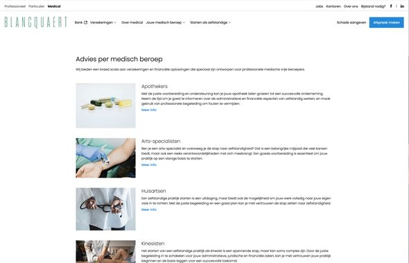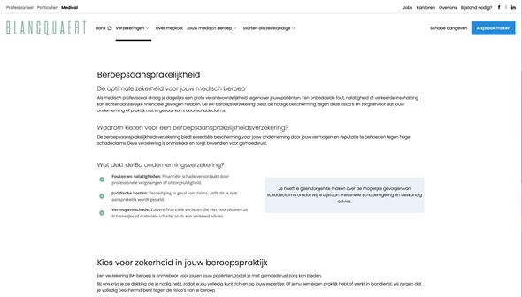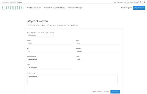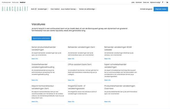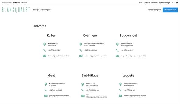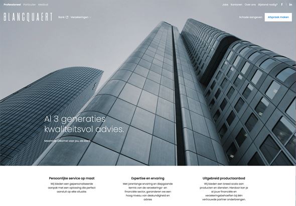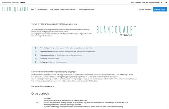Groep Blancquaert wilde een moderne, gebruiksvriendelijke website die zowel hun expertise in verzekeringen en financiële diensten benadrukt als hun lokale verankering en klantgerichtheid uitstraalt.