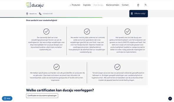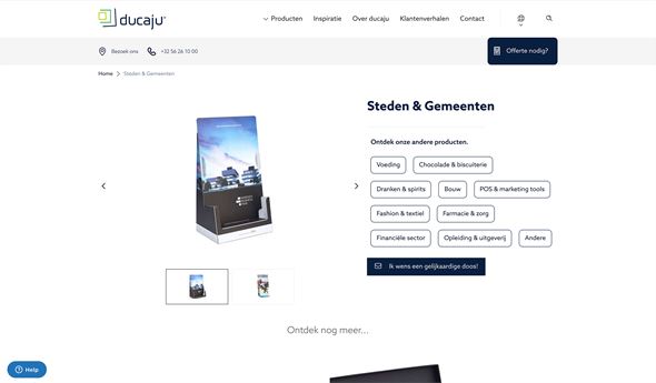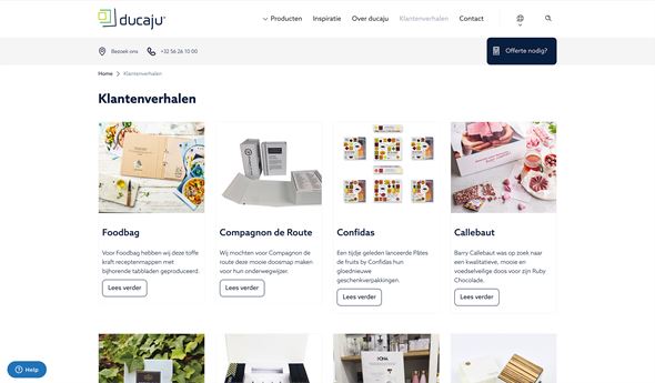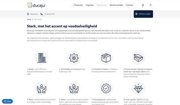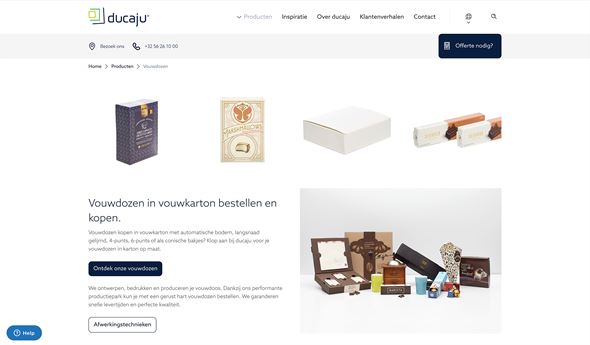 Ducaju zocht een partner die voor hen een meertalige website kon ontwikkelen, waarin men al hun types doosjes met alle afwerkingen en bedrukkingsopties in een overzichtelijke catalogus kon weergeven.