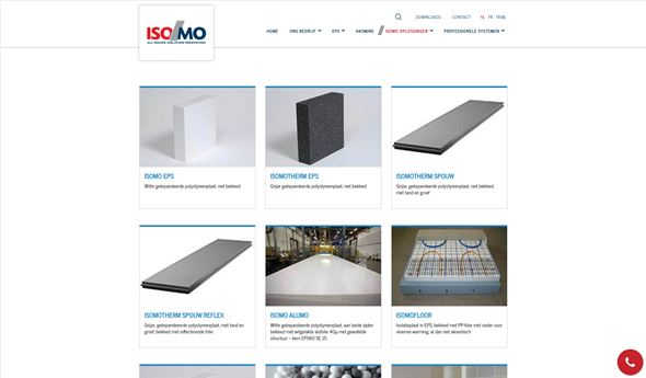 Het strakke design van de website van Isomo vestigt de aandacht maximaal op het bedrijfslogo en de producten die de onderneming aanbiedt.