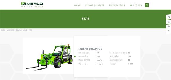 De Lille wou voor hun merk Merlo een overzichtelijke website om hun diverse machines aan te bieden. Men wou het voor de bezoeker makkelijk maken om snel machines te vinden, en een distributeur te vinden.