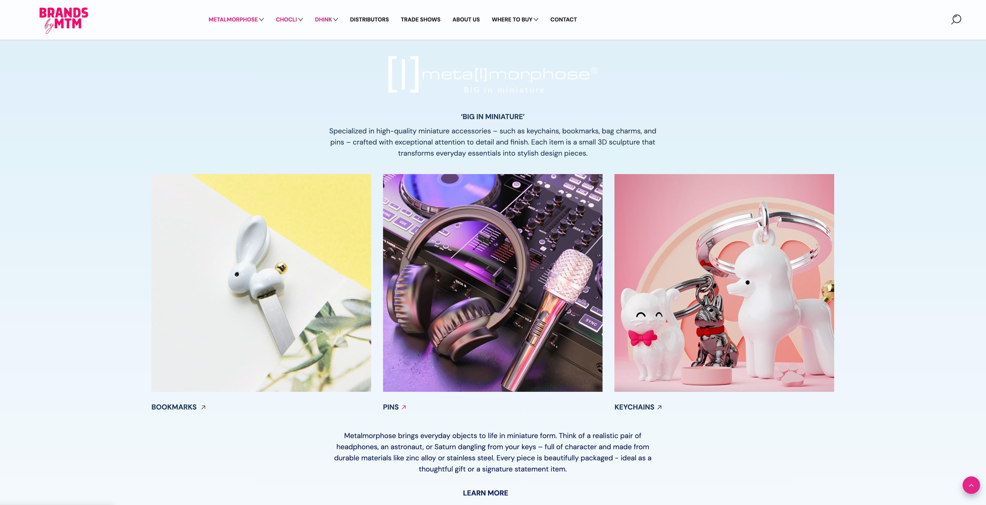 Grote, sfeervolle beelden en creatieve quotes brengen de droomwereld van MTM tot leven. Bezoekers ervaren meteen de magie achter elk product. - Overzichtelijke productlijnen