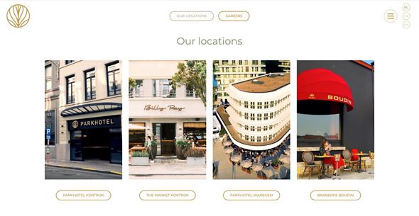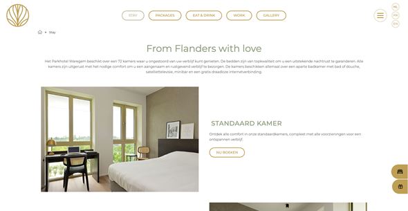 Een strak en eenvoudig design zorgen ervoor dat u makkelijk doorheen de Parkhotel website navigeert en meteen de sfeer van hun “Urban Oasis” opsnuift.