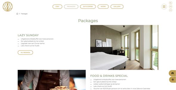 Via duidelijke links kunnen bezoekers meteen reserveren voor het hotel, het restaurant of de wellness.