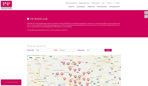Piette & Partners wou een overzichtelijke website, enerzijds gericht naar hun makelaars, anderzijds gericht naar consumenten. Het deel voor de makelaars mag enkel toegankelijk zijn via een persoonlijke toegang. De consumenten krijgen informatie te zien en kunnen een makelaar in hun buurt zoeken.
