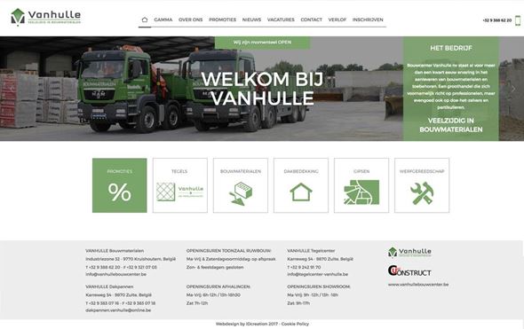 Dankzij de slimme indeling en het strakke grafisch design heeft Bouwcenter Vanhulle een website met een professionele uitstraling, waarop alle informatie en zijn producten makkelijk vindbaar zijn. Ons zusterbedrijf Optimizer verzorgt SEO voor een optimaal resultaat in de zoekresultaten van zoekmachines zoals Google.