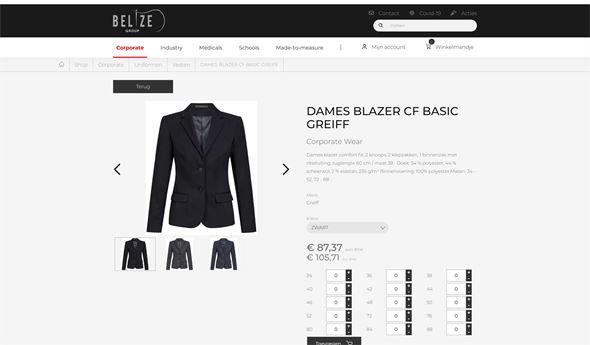 Een uitgebreide waaier aan producten voor diverse sectoren. De webshop van Belize biedt een gemakkelijk te doorbladeren productcatalogus. Het bestelproces van de producten verloopt vlot door een overzichtelijke weergave van de kleuren en maten. Door de koppeling met Yerpa is de webshop steeds up-to-date.