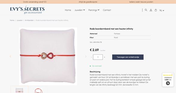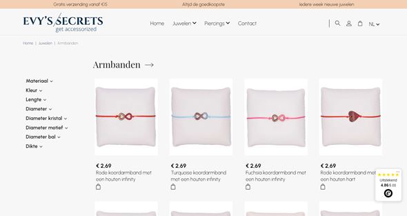 Evy’s Secrets zocht een professionele websitebouwer voor de restyling van hun webshop. De verkoop van hun juwelen en piercings promoten ze via een Google Ads campagne dus een link met het Merchant Center was noodzakelijk.
