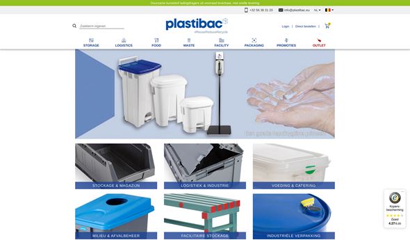 Plastibac is leverancier en distributeur van alle soorten kunststof bakken (magazijnbakken, stapelbakken, euro pallets, jerrycans, vaatwaskorven…), paletten en verpakkingen. Het meer dan 35 jaar oude familiebedrijf heeft een artikelenbestand met ruim 2500 referenties. Het gamma van Plastibac werd opgedeeld in 6 divisies om eenvoudig het overzicht te kunnen behouden. Zo is er Storage, Logistics, Food, Waste, Facility en de jongste divisie PBPackaging.
