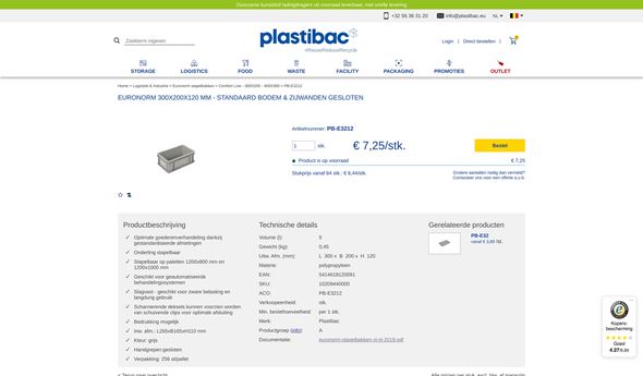 Met 2500 referenties is het belangrijk dat de prijzen en de stockvoorraad goed geregeld zijn. Onze softwarespecialisten hebben ervoor gezorgd dat alle prijzen en de referenties op de website van Plastibac altijd up to date en in real time opgehaald kunnen worden. Web based applicatie van de bovenste plank dus.