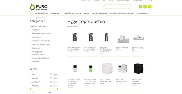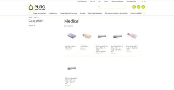 Puro is gespecialiseerd in de verkoop van hygiënische, sanitaire, medische en persoonlijke beschermingsmiddelen voor eenmalig gebruik, producten voor de horeca en afvalbeheerartikelen.