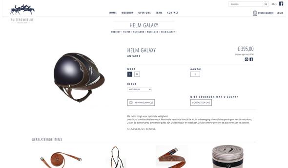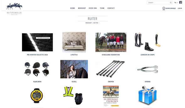 De stijlvolle uitgewerkte webshop van Ruitersweelde geeft een aantrekkelijk overzicht van alle materialen voor ruiter, paard, stallen en pistes, voeding & supplementen en artikelen voor honden.