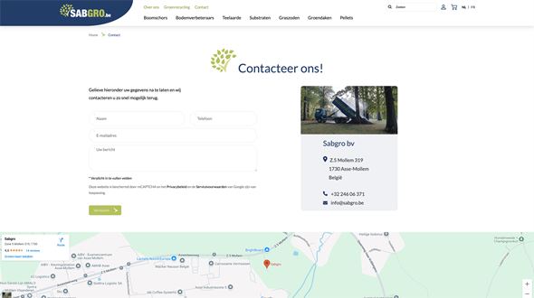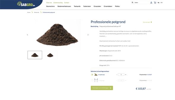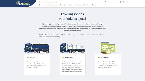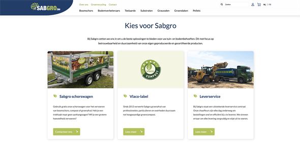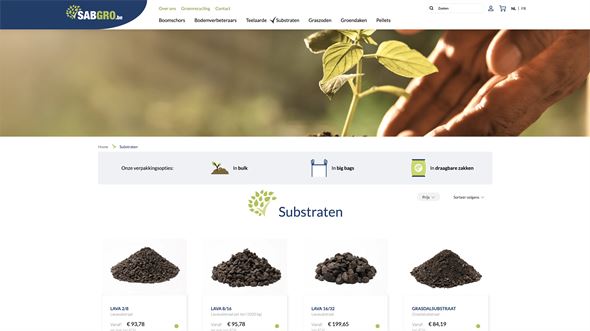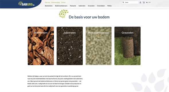 Sabgro, specialist in substraten, bodemverbeteraars, graszoden & boomschors, had nood aan een moderne en overzichtelijke webshop die hun producten en diensten duidelijk presenteert en hun expertise in de sector benadrukt.